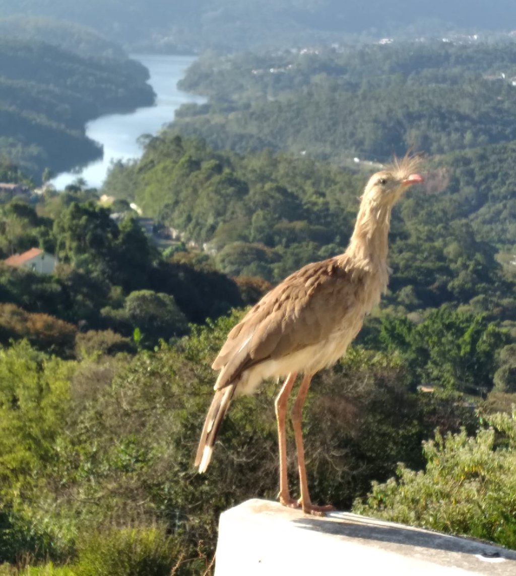 Faz já alguns meses. Subi a rampa de acesso e saída da minha casa e me surpreendi com uma seriema ao atingir a rua dentro do condomínio onde resido, área bastante arborizada na Serra da Cantareira. Encantado, parei o carro. Abri delicadamente a porta, saí parcialmente e vi que, na realidade, havia duas seriemas. A espécie forma casais monogâmicos. Os contatos com representantes da natureza selvagem me elevam.