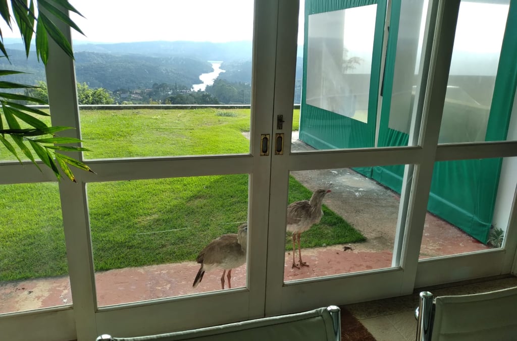 Pago o preço! Estamos falando de um casal dentre uma população generosa de seriemas que vive no Parque Estadual do Juquery, localizado no horizonte Norte de onde resido. Nas fotos que uso para ilustrar nossa conversa, é toda aquela área de mata e campo que vemos em frente à montanha onde se encontra o condomínio que resido.